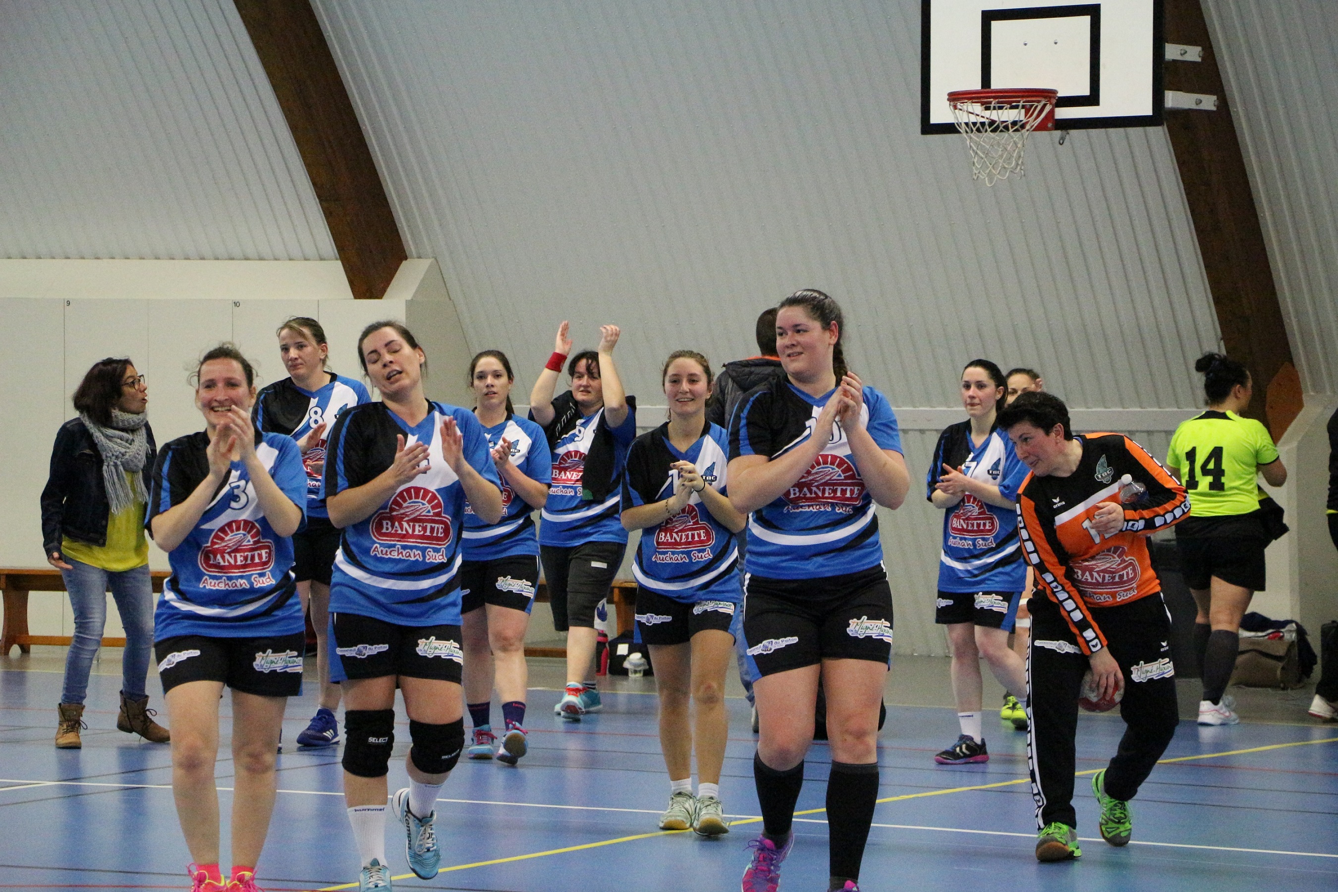 En première mi-temps, les bleues font la différence notamment grâce aux montées de balle, mais les Chauvinoises s’accrochent et la période s’achève avec une légère avance du TAC (10-13).